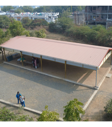 To overcome this challenge, Shatrunjay Yuvak Mandal built the Meal & Meditation Shelter—a dedicated, spacious structure where students can gather comfortably and safely. This shelter ensures that no child’s meal, prayer, or activity is ever disrupted by the weather, fostering a more disciplined, peaceful, and dignified school environment.